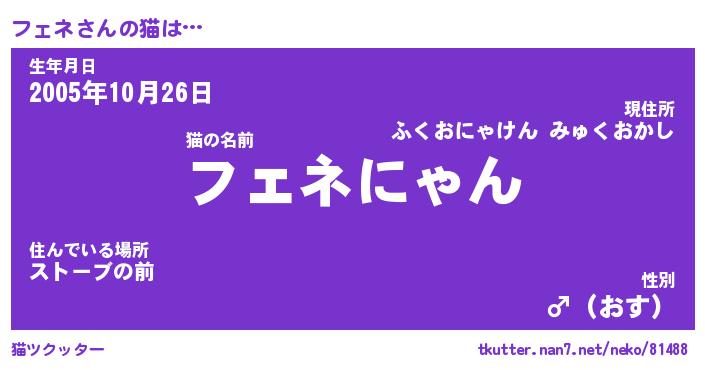 | ファンタジー風あだ名 | 『フェフェル』『エターナルフェネー』 |
