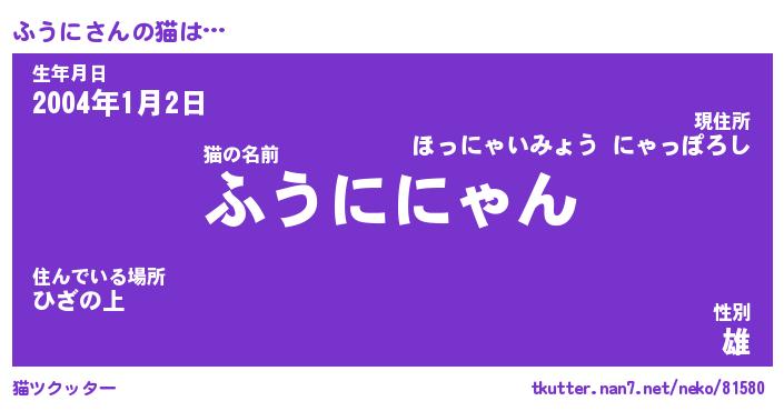 | 意味不明あだ名 | 『ペロリンふうに』『ふうにフォーエバー』 |