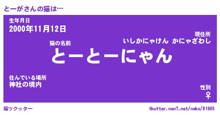 | 生年月日? …「くろねこ」 | 8月01日 10:16 |