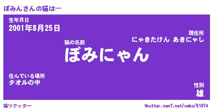 | 生年月日? …「くろねこ」 | 8月01日 10:16 |