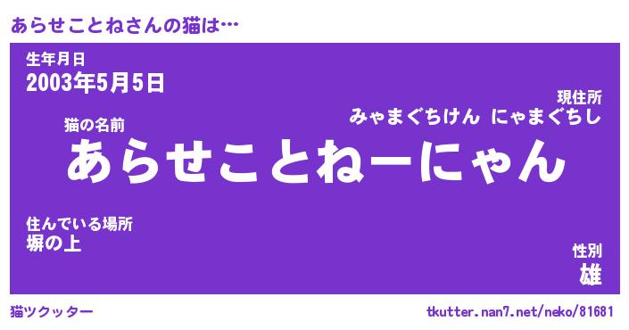 | 生年月日? …「くろねこ」 | 8月01日 10:16 |