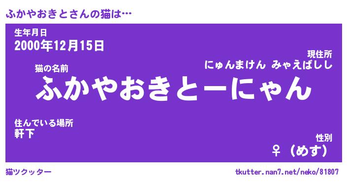 | ポケモン風あだ名 | 『フカチュウ』『フカヤダネ』 |