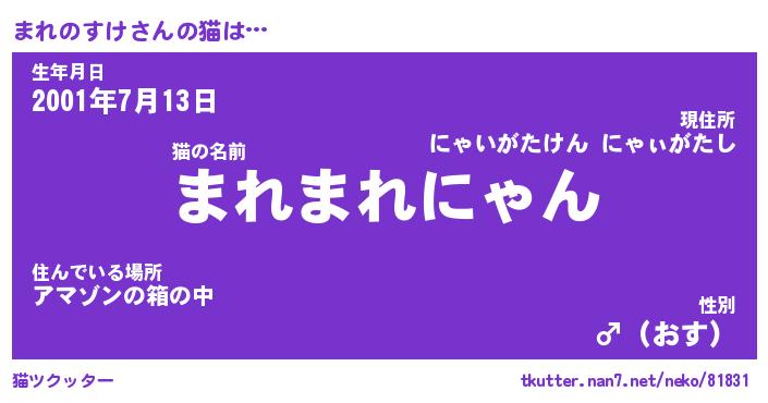 | 2回繰り返すあだ名 | 『まれまれ』『ままれれ』『ぎょぎょ』 |