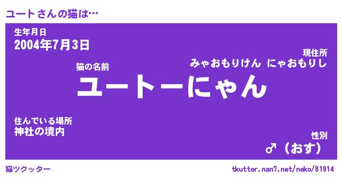 | ポケモン風あだ名 | 『ユーチュウ』『ユートダネ』 |