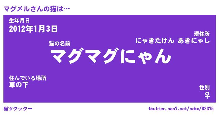 | 意味不明あだ名 | 『ペロリンマグメル』『永久保存マグメル』 |