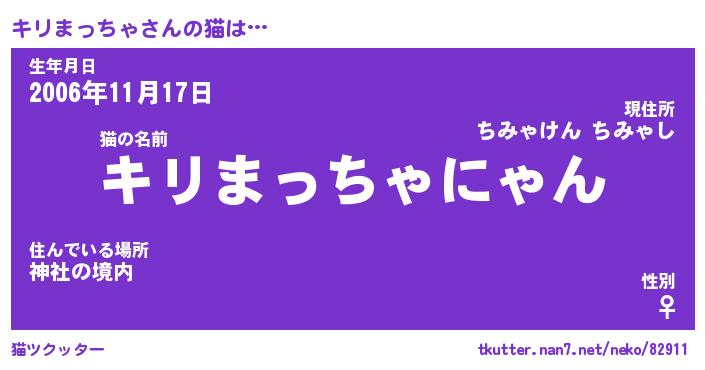 | 男性向けラノベタイトル風あだ名 | 『キリまっちゃの憂鬱』 |