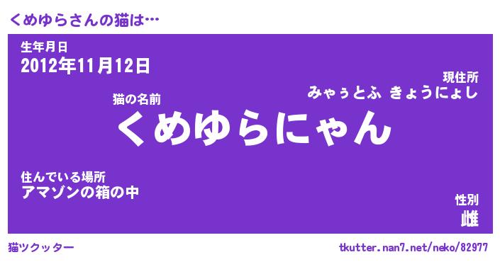| 意味不明あだ名 | 『ペロリンくめゆら』『永久保存くめゆら』 |