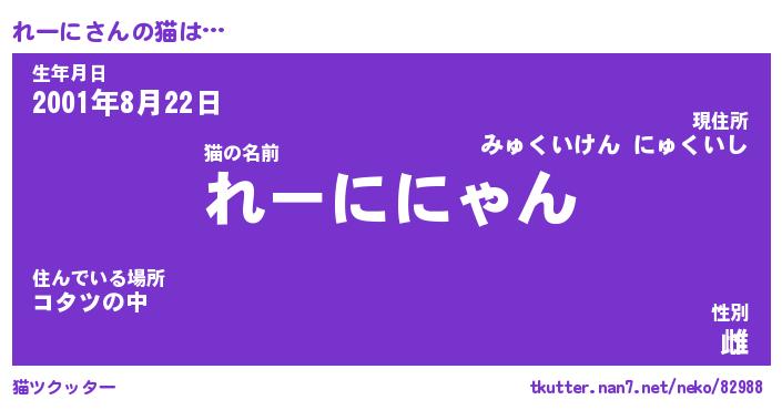 | 意味不明あだ名 | 『ペロリンれーに』『れーにフォーエバー』 |