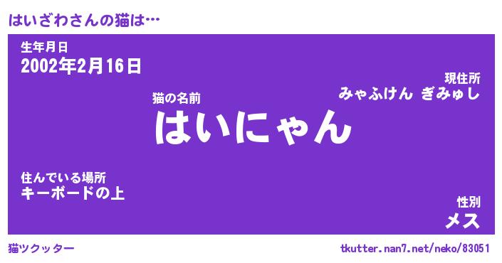 | 生年月日? …「くろねこ」 | 8月01日 10:16 |