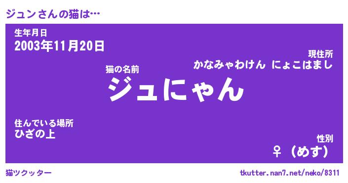 | ポケモン風あだ名 | 『ジュチュウ』『ジュンダネ』 |