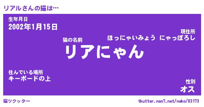 | 生年月日? …「くろねこ」 | 8月01日 10:16 |