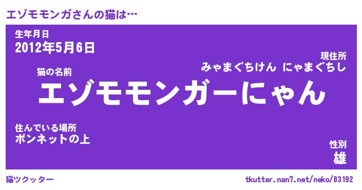 | ヒーロー風カッコイイあだ名 | 『スーパーエゾモモンガ』『炎刃騎士エゾ』 |