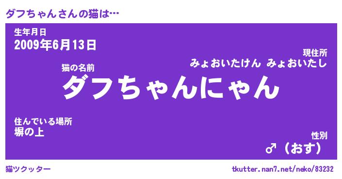 | 2回繰り返すあだ名 | 『ダフダフ』『ダダフフ』『いそいそ』 |