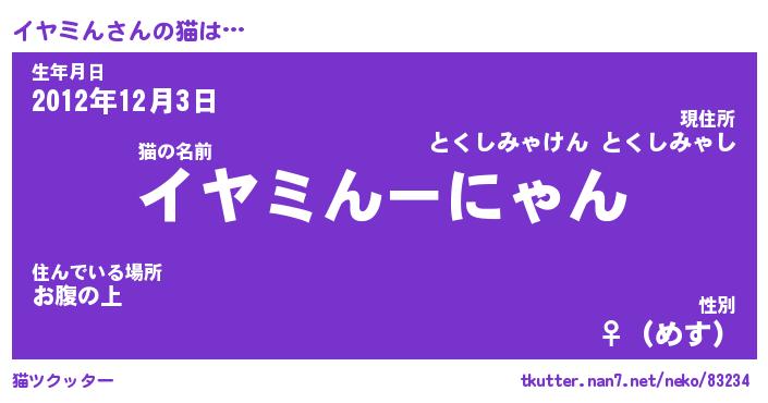 | 意味不明あだ名 | 『ペロリンイヤミん』『永久保存イヤミん』 |