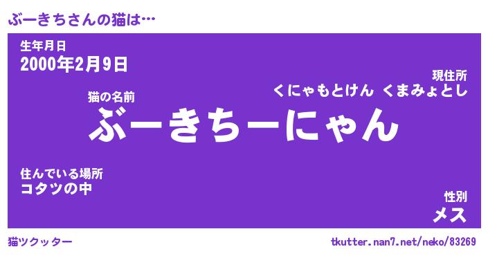 | 意味不明あだ名 | 『ペロリンぶーきち』『永久保存ぶーきち』 |