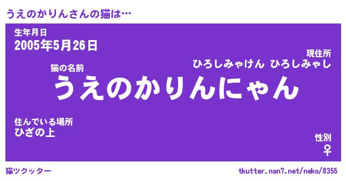 | 男性向けラノベタイトル風あだ名 | 『うえのかりんの憂鬱』 |