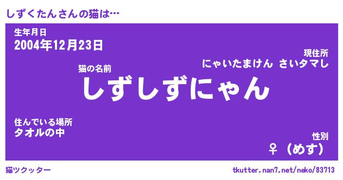 | 2回繰り返すあだ名 | 『しずしず』『ししずず』『ぬれぬれ』 |