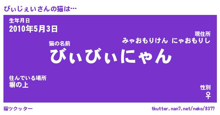 | 2回繰り返すあだ名 | 『びぃびぃ』『びびぃぃ』『ぬれぬれ』 |