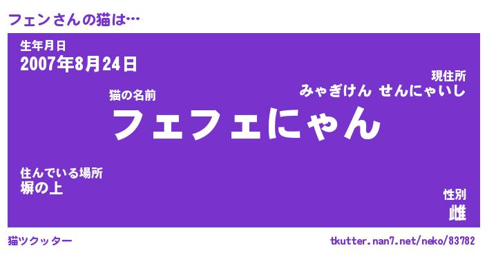 | ファンタジー風あだ名 | 『フェフェル』『エターナルフェンー』 |