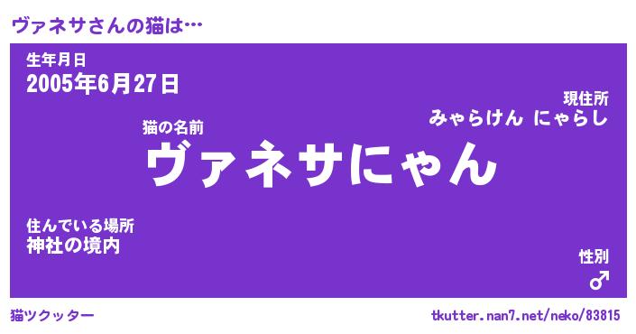 | 意味不明あだ名 | 『ペロリンヴァネサ』『永久保存ヴァネサ』 |
