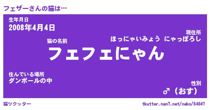 | ファンタジー風あだ名 | 『フェフェル』『エターナルフェザーー』 |