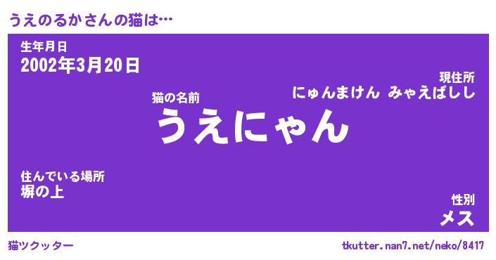 | ポケモン風あだ名 | 『ウエチュウ』『ウエノダネ』 |