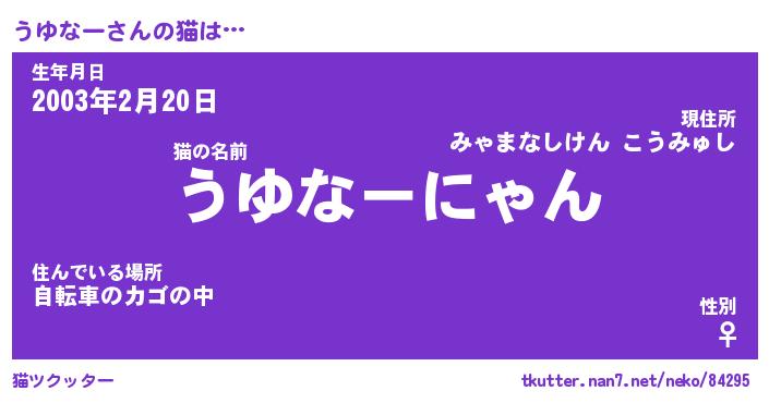 | 意味不明あだ名 | 『ペロリンうゆなー』『永久保存うゆなー』 |