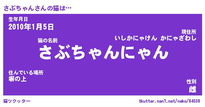 | ヘコむあだ名 | 『さぶにゅー』『牛乳』『さぶっちょ』 |