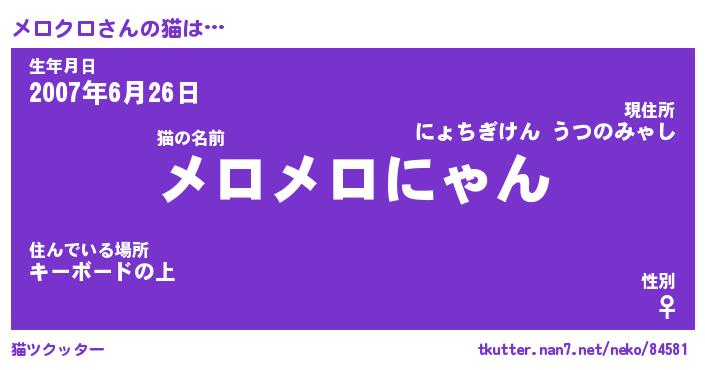| ファンタジー風あだ名 | 『メロフェル』『エターナルメロクロー』 |