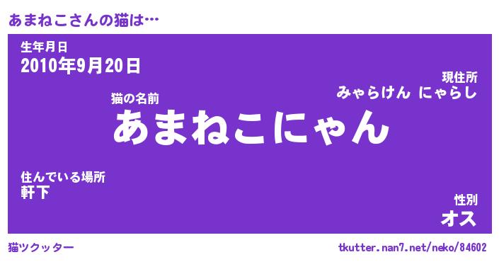| 男性向けラノベタイトル風あだ名 | 『あまねこの憂鬱』 |