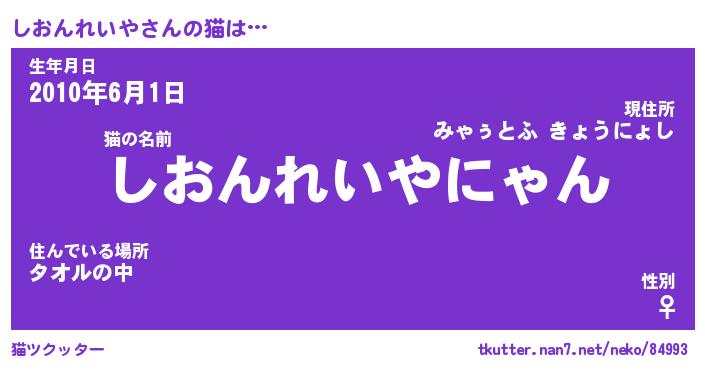 | 肩書あだ名 | 『しおんれいや店長』『しおんれいや先生』 |