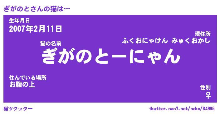 | 意味不明あだ名 | 『ペロリンぎがのと』『永久保存ぎがのと』 |