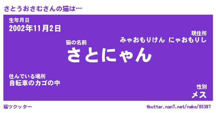 額に三日月のアザがあって月面に生まれる→ねこ鍋の具になる→家猫化して現在に至る