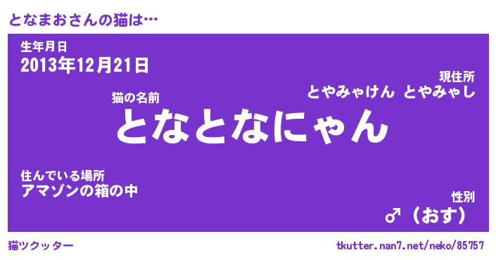 | ポケモン風あだ名 | 『トナチュウ』『トナマダネ』 |
