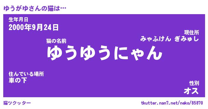 | ポケモン風あだ名 | 『ユウチュウ』『ユウガダネ』 |
