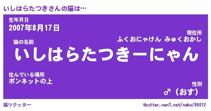 | ツイッター | いしはらたつきさんのツイッターID『fukuyoka_idle』 |