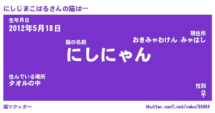 | ポケモン風あだ名 | 『ニシチュウ』『ニシジダネ』 |