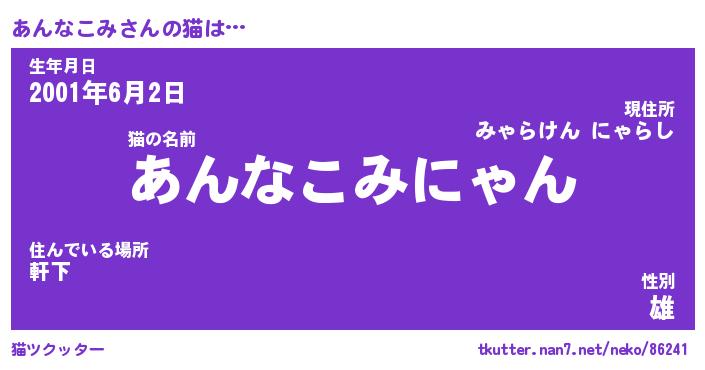 | 生年月日? …「くろねこ」 | 8月01日 10:16 |