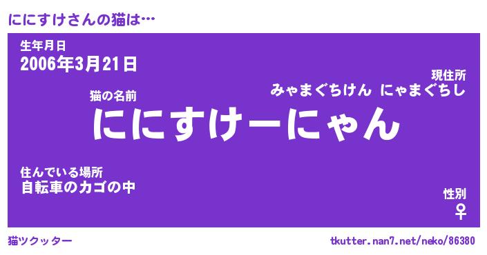 | 意味不明あだ名 | 『ペロリンににすけ』『永久保存ににすけ』 |