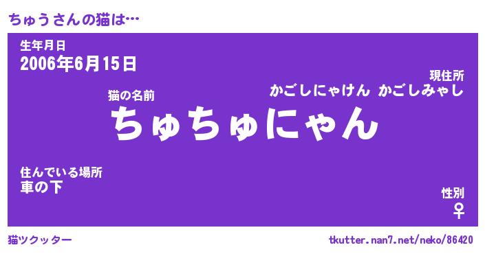 | 2回繰り返すあだ名 | 『ちゅちゅ』『ちちゅゅ』『あんあん』 |