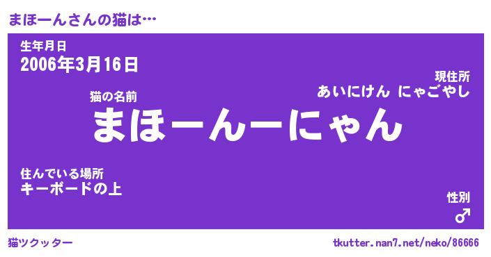 | ヘコむあだ名 | 『まほにゅー』『豆乳』『まほを』 |