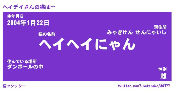 | 自動車の名前っぽいあだ名 | 『ヘイティマ』『ヘクア』『ヘント』 |