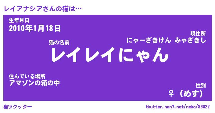 | ツイッター | レイアナシアさんのツイッターID『namakemono_idle』 |