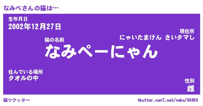 | 生年月日? …「くろねこ」 | 8月01日 10:16 |