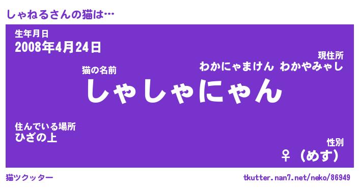 | 意味不明あだ名 | 『ペロリンしゃねる』『永久保存しゃねる』 |