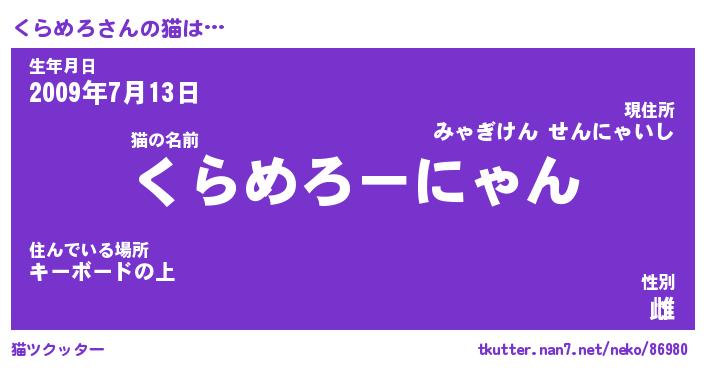 | 生年月日? …「くろねこ」 | 8月01日 10:16 |