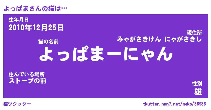 | 意味不明あだ名 | 『ペロリンよっぱま』『永久保存よっぱま』 |