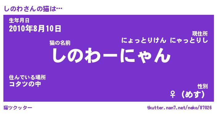 | ファンタジー風あだ名 | 『シノフェル』『エターナルシノワー』 |