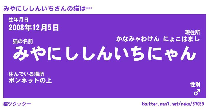 | 男性向けラノベタイトル風あだ名 | 『みやにししんいちの憂鬱』 |