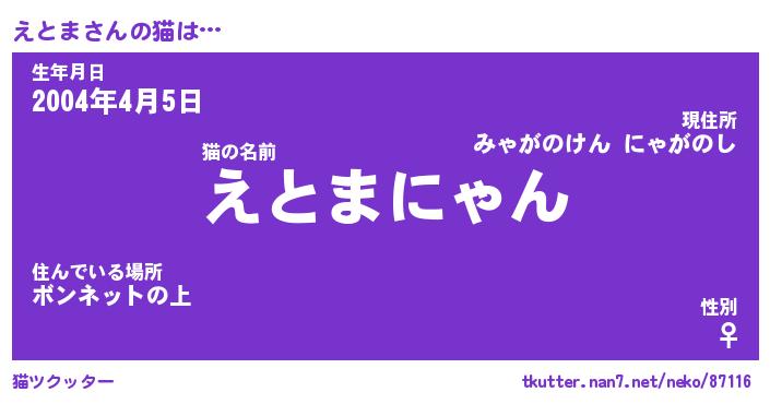 | 欧米人風あだ名 | 『マイケルえとま』『えとまクリステル』 |